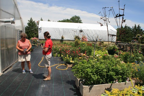 This is a very professional place and is dotted with Mona’s husband’s farm-stuff sculptures that serve as garden art or a place to hang plants.