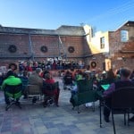 Set up an outdoor living room. Make it comfy and home-like. (Hey, I’ve seen plenty of outdoor furniture that looked comfy and home-like.) Hold conversations there. CFRA did an outdoor living room in their town of 851 and convened a series of conversations with local people. It was a temporary art/community project, but makes perfect sense to try for a longer time in a roofless building.