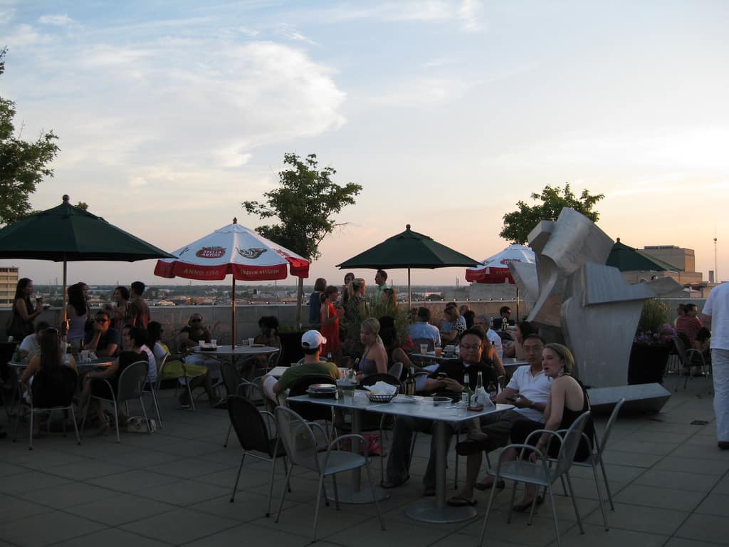 In Oklahoma City, the Museum of Art has a rooftop space that they turned into a hangout spot complete with a bar selling drinks, music and dancing. I was invited up there for a get-together before a conference. They said it was the coolest place to hangout in Oklahoma City. It was actually the hottest, I think, given the 100+ degree weather we were having that day. But it was still crowded, and everyone was talking and having a good time. The views were terrific, and when the sun finally went down, it was delightful.
